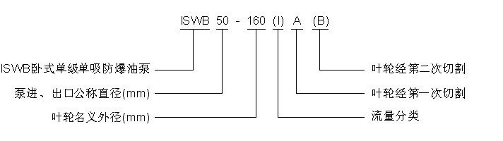 二、防爆管道離心泵ISWB50-125 用 途 ISWB臥式單級單吸防爆油泵,供輸送汽油、煤油、柴油等石油產品,被輸送介質溫度為-20℃~+120℃。
