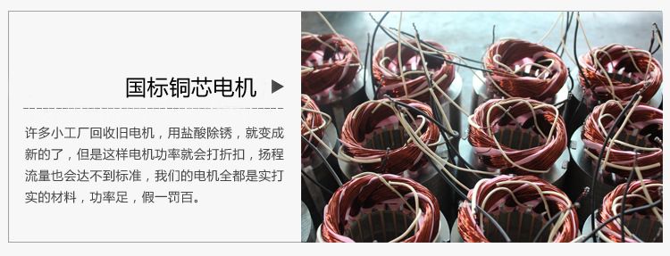 7、電機定子采用B級和F級絕緣,內設熱保護器,當電機過載發熱,保護器及時作出動作,對泵和電機實施保護。